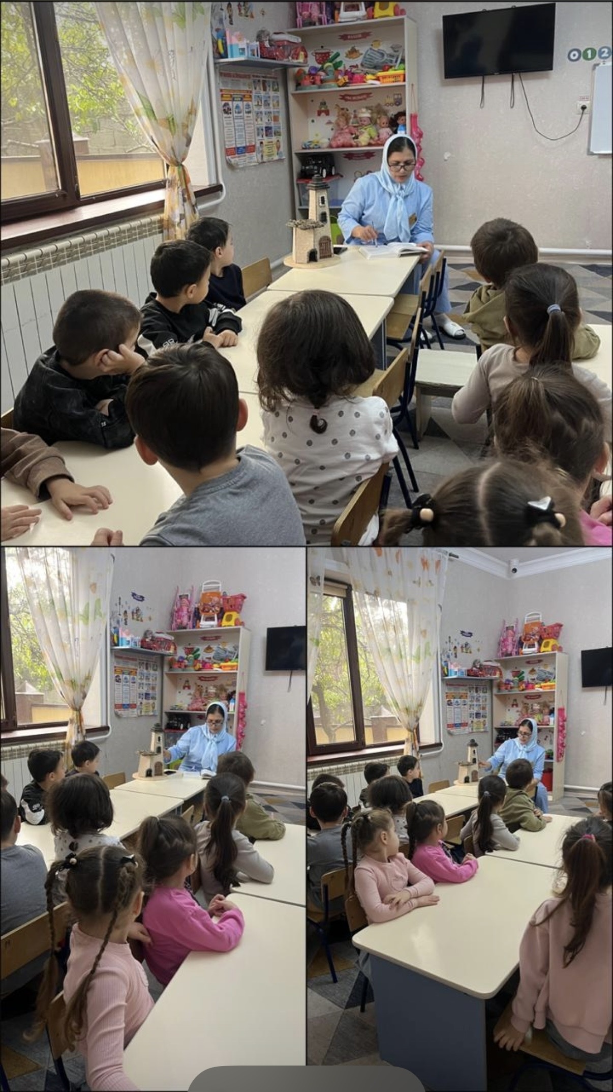 Библиотекарь Бахмадова Д.М.  библиотеки с.Закан-Юрт в Доме культуры, для ребят из старшей группы "Зайчата", провела беседу: «Герой, живущий в памяти народа», посвященную 74-летию А. Х. Кадырова, первого президента Чеченской Республики, героя России. ...
