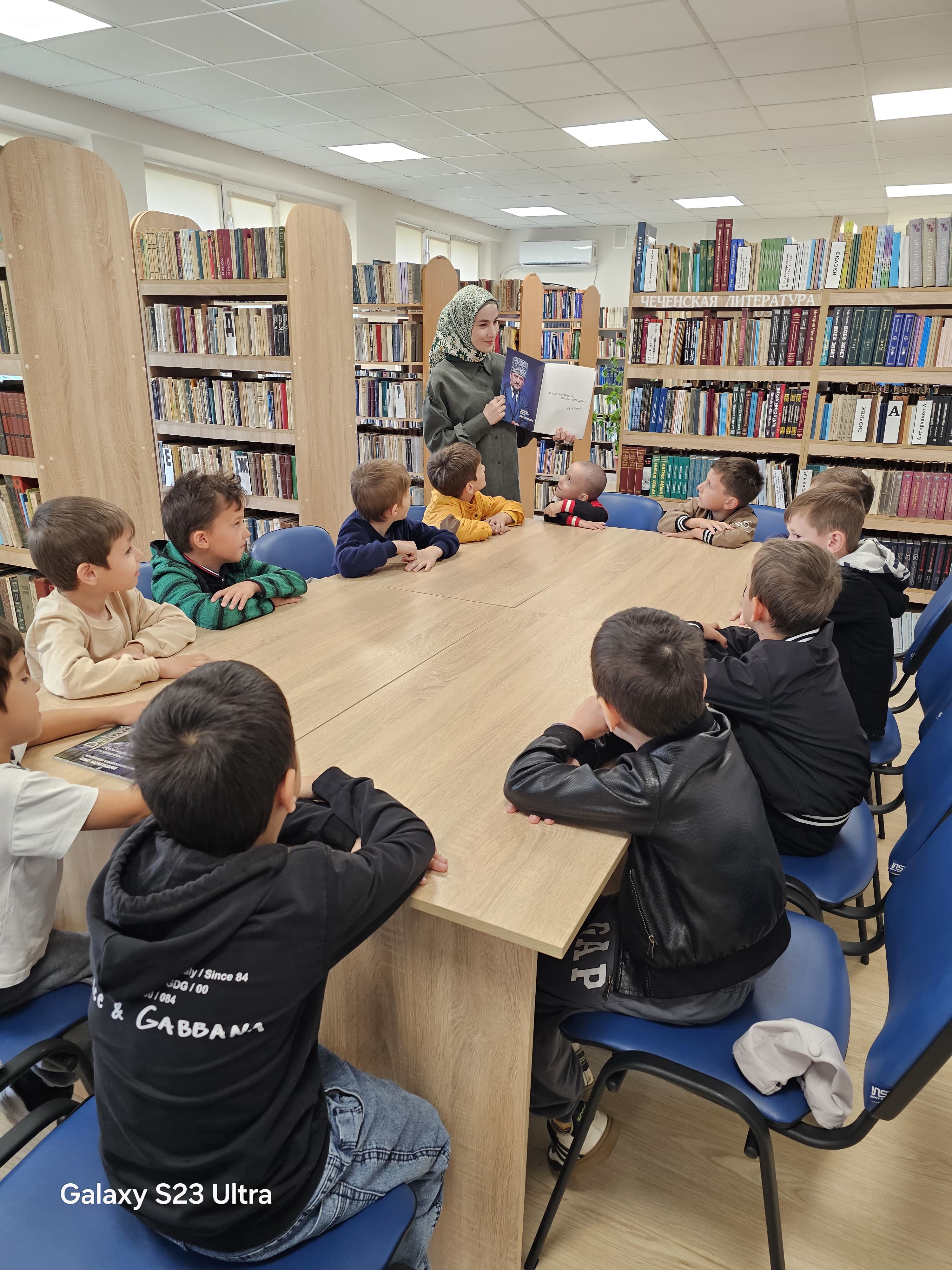 12.05.2025Библиотекарь Бахмадова Д.М. библиотеки с.Закан-Юрт в Доме культуры, для ребят из старшей группы "Зайчата", провела беседу: «Герой, живущий в памяти народа», посвященную 74-летию А. Х. Кадырова, первого президента Чеченской Республики, героя России. В ходе беседы заведующая библиотеки рассказала присутствующим детям все о жизни А. Х. Кадырова. Беседа прошла в теплой атмосфере, каждый ребенок рассказал о том, что он знает о А. Х. Кадырове. Ребята были благодарны за то, что он открыл путь в мирную жизнь своему народу, путь, который продолжил его сын Р. Кадыров. Также в библиотеке была подготовлена книжная выставка, посвященная А. Х. Кадырову, с которой познакомились дети.