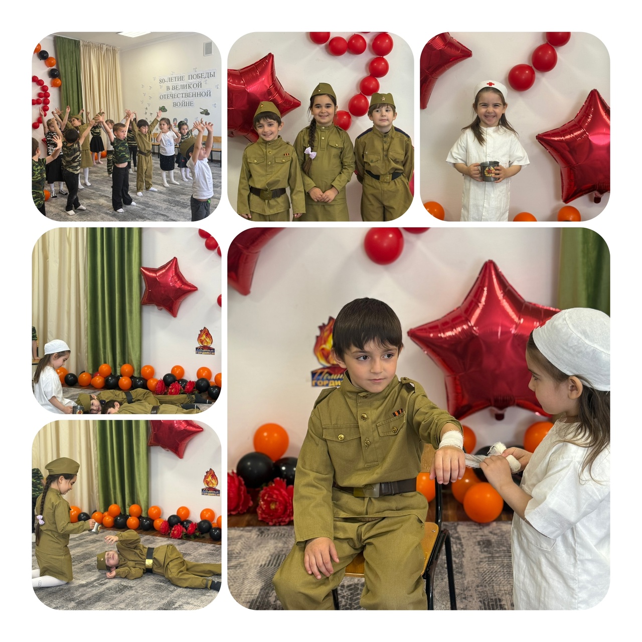 08.05.2025МБДОУ «Детский сад»Чебурашка» Средняя группа «Ласточки» Тема:80-летие Победы в Великой Отечественной войне. В преддверии празднования 80-летия Дня Победы в детском саду проходили мероприятия в рамках тематической недели «День Победы». Цель: воспитание у детей дошкольного возраста нравственно – патриотических качеств и чувств гордости за свою Родину. Во всех группах с детьми проводились беседы: «Памятное место нашего поселка», «Чтобы знали, чтобы помнили», «День Победы», " Что такое героизм", «Георгиевская лента – символ Дня Победы», «Военная техника, рода войск», «Родина-мать зовет!», Были проведены художественные чтения. Их цель: научить чуткому, доброжелательному отношению к товарищам; побудить детей к нравственным поступкам; воспитывать чувство уважения к людям, доброжелательность, дружелюбие, желание совершать добрые поступки. Дети услышали рассказы и стихи о суровых военных днях, о подвигах солдат Великой Отечественной Войны и сами стали составителями рассказов о своих прадедах. Праздник, посвященный Дню Победы, прошел 7мая 2025 года в детском саду. Его участниками стали дети с средней гриппы»Ласточки». Праздник был подготовлен с целью формирования у детей знаний о Великой Отечественной войне, обогащения знаний дошкольников об истории своей страны, развития творческих способностей детей, воспитания чувства гордости за героизм нашего народа, воспитания устойчивого интереса к армии. Воспитатель: Сулейманова Д.И.